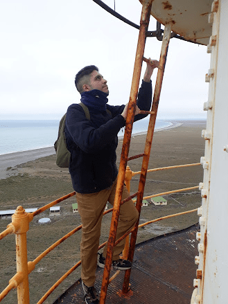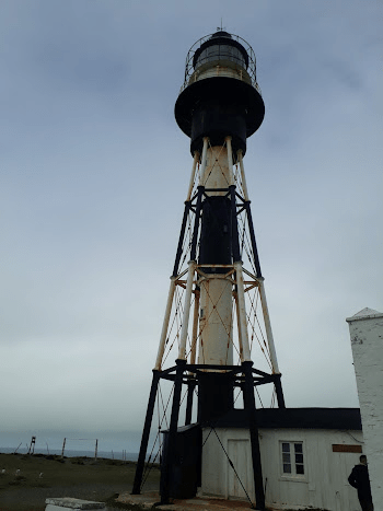 Es un día gris. Subo los 101 escalones que me conducen a la torre del faro de Cabo Vírgenes. Pienso en los intrépidos navegantes y exploradores, los colonos y buscadores de oro. Todos han dejado su huella en Cabo Vírgenes. En este confín del continente, es inevitable no sentir el peso de la historia.