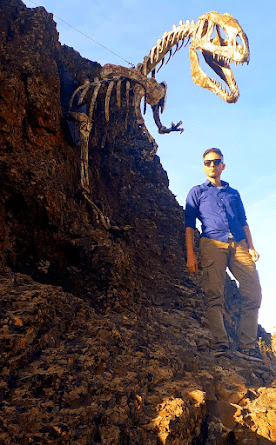 Al llegar a la localidad de Los Altares, vemos surgir entre las rocas la réplica de un dinosaurio desaparecido hace millones de años. El “Asfaltovenator” carga en su nombre con la historia y lugar de hallazgo: “Asfalto” por la Formación Cañadón Asfalto, que se formó hace alrededor de 171 millones de años, “venator” (cazador en griego) y “vialidadi” en honor al trabajo de Vialidad Provincial que ayudó en la extracción. La escultura fue realizada a tamaño real y es obra del artista Tomas Schinelli.