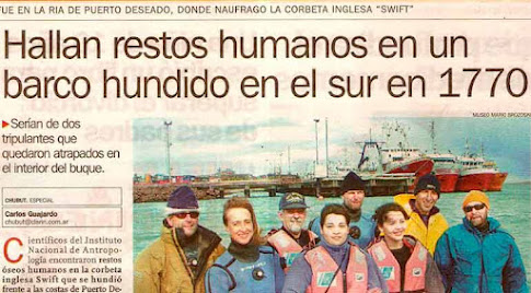 El 7 de marzo de 1770 la corbeta inglesa “Swift” salió del puerto Egmont en las Islas Malvinas para realizar una exploración de la costa patagónica, un territorio que todavía estaba controlado por los indígenas. Sin embargo, el 13 de marzo la embarcación fue embestida por un fuerte temporal y el capitán George Farmer decidió refugiarse en la ría Deseado, (provincia de Santa Cruz) lugar donde encalló dos veces y luego se hundió a 50 metros de la costa. El martes 13 de marzo de 1770, el oficial Erasmus Gower anotó en la bitácora que la corbeta HMS Swift se hundió a las 18.00 horas en la ría Deseado. La HMS Swift era una nave de guerra del tipo sloop, comparable a la categoría de “corbeta” en la clasificación náutica española.