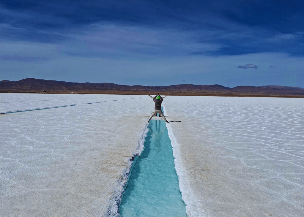 El cielo, de un azul profundo, parece fundirse con la blancura cegadora del suelo, creando una postal surrealista que hipnotiza. No es solo un espectáculo visual: es también un encuentro con la energía latente de la Puna, una conexión profunda con la naturaleza en estado puro.
