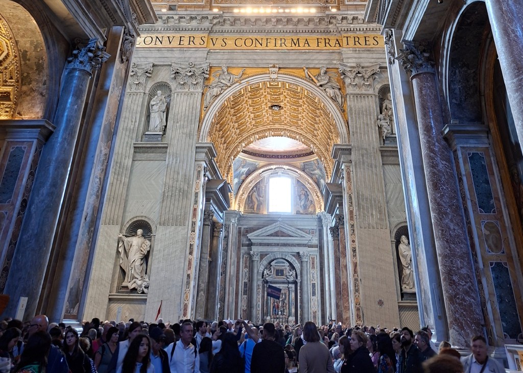 Uno de los momentos más significativos de mi visita fue poder conocer por dentro la Basílica de San Pedro durante el Año Santo. Este templo, el más importante del catolicismo, adquiere una dimensión aún más profunda en el contexto del Jubileo.
